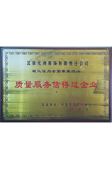 中國(guó)裝飾協(xié)會(huì)頒發(fā)質(zhì)量服務(wù)信得過(guò)企業(yè)